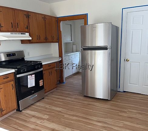 This duplex has two bedrooms, a large eat-in kitchen with a new floor being installed, There is a refrigerator and gas stove and lots of cabinets,a pantry off the kitchen, a dining room with a built-in cabinet, a nice size living room and newly updated bathroom.There is plenty of storage.There is a separate driveway for off-street parking. Near Moody Street and all that it has to offer. NO PETS AND NO SMOKING. Good credit and references required.Pictures from a previous tenancy.