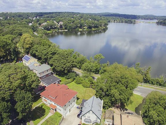Set high on the hill overlooking the Lower Mystic Lake sits this outstanding condo with year round water views! An architectural gem built in 1925 boasting exquisite details throughout including French doors, inlaid wood floors and high ceilings. An adorable breakfast nook, large fireplace and glass front bookcases are all touches that make this home feel special. Great for entertaining, the open living/ dining room provides a wonderful space for large gatherings. 2 generous bedrooms on main level, one with attached half bath and both adjacent to the full tiled bath. The 3rd bedroom is smaller (good for a child's room or office) and leads out to magnificent back porch with nice yard and lake views.This desirable neighborhood is convenient to public transportation to Cambridge & Boston. Close to W. Medford Commuter Rail & Mystic Beach State Park where you can swim, sail or launch your kayaks & paddle boards for summer fun! This is fantastic offering in a location that can't be beat