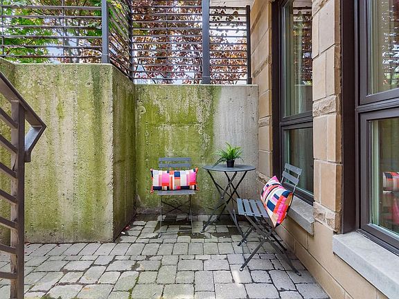 Do not miss this immaculate END UNIT condo in coveted NEIGHBORHOOD LAUNCH. 1 bed, 1 bath w/ 1 car GARAGE in the heart of the city. Perfect, open concept floor plan with walls of windows on two sides. Upgraded kitchen with granite countertops and SS appliances. Well appointed bedroom w spacious walk-in closet. GORGEOUS bathroom features cool leather granite counter and wall of glass tile! This urban oasis includes both an expanded PRIVATE front patio perfect for entertaining as well as a back patio for additional outdoor space! Custom drapes and BOSCH w/d. This unit has been freshly painted and is MOVE IN READY! Tax abated, LOW HOA fees, exclusive access to The Welsh Community Center; Hills Market and all of downtown restaurants, events, nightlife and fun at your fingertips!!