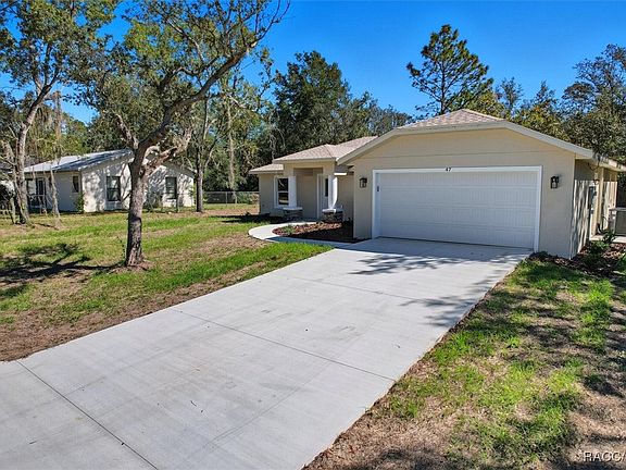 Welcome to Inverness Highlands North—where modern craftsmanship meets small-town charm. This brand-new construction home offers 1,503 square feet of thoughtfully designed living space, featuring 3 spacious bedrooms and 2 full bathrooms. Step inside and you’ll find a bright, open floor plan with luxury vinyl plank flooring throughout the main living areas and plush carpet in the bedrooms for added comfort. The kitchen is a true centerpiece, showcasing granite countertops, stainless steel appliances, and stylish cabinetry that blends function with elegance. Both bathrooms continue the upscale feel with matching granite and designer finishes. Enjoy Florida living year-round on your front porch with a tongue-and-groove ceiling—a perfect spot to relax and unwind. With a 2-car garage, energy-efficient construction, and a prime location just minutes from downtown Inverness, parks, lakes, and the Withlacoochee State Trail, this home combines quality, comfort, and convenience. Don’t miss your opportunity to own a beautifully built new home in the heart of Inverness—schedule your private showing today!