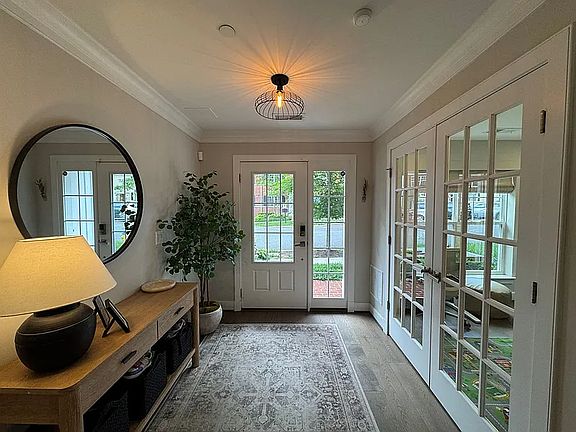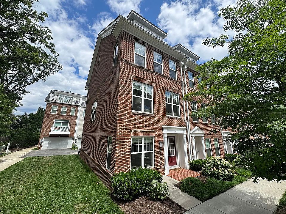This stunning 4 bed, 3.5-bath end-unit brick townhome offers stylish, spacious living while combining modern design with functional comfort. This home provides both curb appeal and contemporary features throughout. The entry hall leads to an entry-level bedroom, ideal for guests, a home office, or multigenerational living. The home's open floor plan is enhanced by crown moldings, recessed lighting, and updated fixtures, while laminate floors and large windows throughout create a bright, polished ambiance. Dual-zone temperature control ensures comfort on every level. The heart of the home is the gourmet kitchen, complete with stainless steel appliances, built-in microwave, tile backsplash, and quartz countertops, all anchored by a breakfast bar that flows seamlessly into the dining area and spacious living area. From here, enjoy direct balcony access, perfect for relaxing or entertaining. Upstairs, the primary bedroom is a true retreat with a luxury walk-in closet and a gorgeous attached bathroom featuring an upgraded double-sink vanity, glass-enclosed shower, and stylish tilework. Two additional large bedrooms with spacious closets for occupants or guests. The top floor boasts a private bedroom, a family room for entertainment, and access to a top-level deck, ideal for lounging or enjoying the view. A private attached garage adds security and practicality to this exceptional townhome. Enjoy the access to a side yard, perfect for gardening, entertaining, or extra outdoor space.