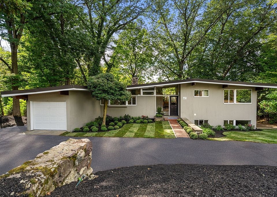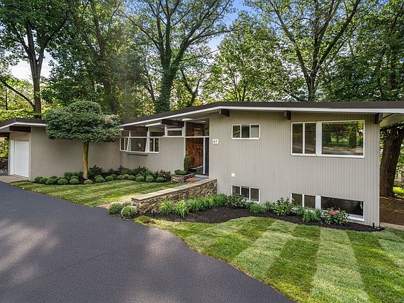 Nestled in Newton’s highly coveted Chestnut Hill Historic District, this newly renovated 3-bedroom, 2.5-bath contemporary home combines modern updates with timeless architectural character. Set on a private 15,000 sq. ft. lot, the home features a spacious open floor plan with soaring ceilings, exposed beams and walls of glass overlooking the wooded grounds.The dining and living rooms are anchored by a striking floor-to-ceiling stone fireplace and seamlessly connect to a screened porch and side patio, perfect for indoor-outdoor living. Recent updates include refinished hardwood floors along with thoughtfully renovated baths and kitchen, blending timeless architectural details with modern conveniences. An adjoining deck provide additional space to enjoy the tranquil backyard. This Chestnut Hill gem presents a rare opportunity to enjoy modern updates in a historic setting just minutes from Boston, the Chestnut Hill Reservoir, Boston College, public transportation and major routes.