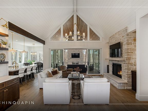 Step inside to find an open-concept floor plan with soaring ceilings, expansive windows, and premium finishes throughout. The gourmet kitchen boasts top-of-the-line appliances and a generous workspace — perfect for cooking and entertaining. Enjoy seamless indoor-outdoor living on the large screened porch, ideal for morning coffee or evening gatherings around the fireplace. Additional features include a full-house generator, a bar, Trex decking, and a three-car garage.