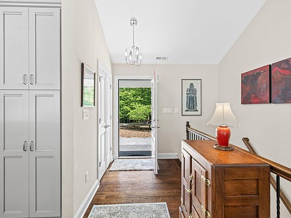 JUST LISTED! Get your clients ready for this one! This is an absolutely stunning ranch on finished terrace level w/possible in-law suite located on the cul-de-sac & 13th fairway. The seller loaded this property w/numerous thoughtful upgrades. Gourmet kitchen w/quartz counters, custom soft close/dovetail cabinets/drawers, 2 lazy susans, tile backsplash, induction cooktop, built-in oven/microwave, Kitchen Aid appliances, window seat, electronic built-in trash can, pantry, breakfast bar, under/over cabinet light. Wall of windows in main living areas enjoy gorgeous wooded/golf course views, floor-to-ceiling stacked stone gas fireplace, large dining, hardwood floors, 3 sliders to deck plus surround sound inside & out both levels. Deck w/low maintenance vinyl decking, rain barrel, concrete patio, formal garden, water features & more. 2 zone duel fuel HVAC, built-in generator. Large laundry room w/wash basin & loads of cabinetry. Wash basin in garage too. True home office w/french doors. Primary w/vaults, walk-in closet w/custom shelving, pocket doors, stepless walk-in shower, ceramic tile & more upgrades. Main level en-suite guest bedroom. Terrace level features in-law suite, 2 additional beds, family room, dining room, storage & more.