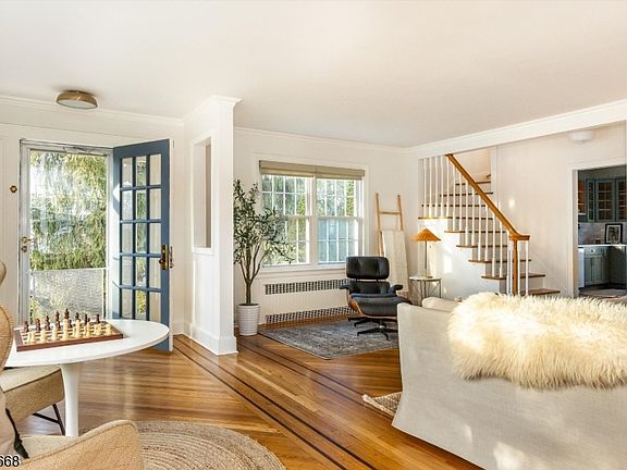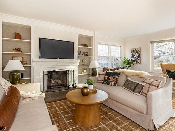 This distinctive Maplewood Colonial is situated on a peaceful, tree-lined street in close proximity to it all - beautiful Memorial Park with its duckpond and picturesque walkways, the fabulous dining and shopping in Maplewood Village, and the Midtown Direct train to New York. You'll enter into the grand living room with high ceilings, built-in bookcases, ribboned hardwood floors, classic molding, a cozy, inviting fireplace, and big picture windows that invite tons of light in. The freshly updated kitchen features brand new counters, backsplash and newly painted wooden cabinetry. Proceed to the beautiful, oversized dining room that leads out to a magical screened-in sunroom, presiding over the spacious yard bursting with trees and shrubbery and open space perfect for jovial outdoor living. The second floor features three bright, sunny bedrooms and a refreshed full bath. The finished third floor is a discrete space just perfect for a primary bedroom with its own en-suite full bath. The partially finished basement offers a laundry room, a half-bath, and can serve as a home office, entertainment room and/or additional storage area. This home is sheer Maplewood with all its charm, style and convenience.