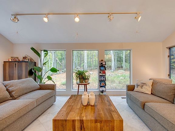 Stunning 4BR Mid-Century Contemporary home with first floor primary suite sited on three acres in one of Sherborn’s most desirable neighborhoods. The main level offers a light filled living room with vaulted ceiling, floor to ceiling windows and gas fireplace; dining room, kitchen opens to the family room with a small exterior deck; and the primary bedroom suite w/walk in closet and bath. Three bedrooms, a wonderful loft/home office and a new full bath complete the second floor. A three level spiral back staircase leads down to the three bay garage and storage area. Walking trail down the street. Sherborn is known for its top ranked public schools, Farm Pond and has commuter rail access to Boston just two miles away. New 4BR septic, HVAC system, roof, skylights, interior & exterior painted 21/22. Possible owner financing.