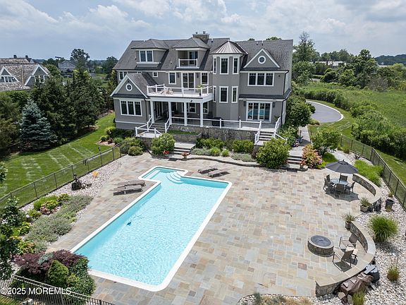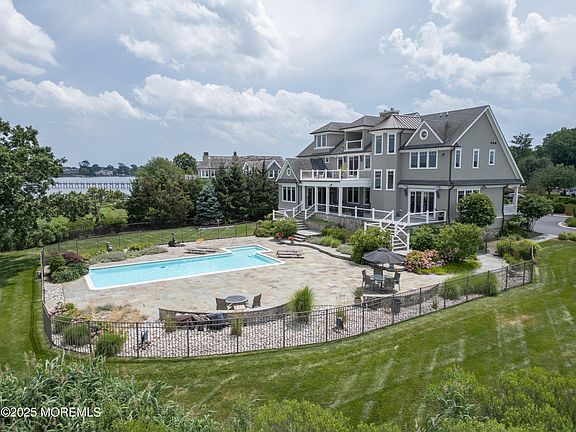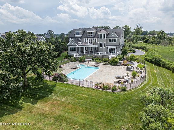 Welcome to a one-of-a-kind custom-built waterfront residence, set on 3.84 breathtaking acres in one of Little Silver's most prestigious neighborhoods. This extraordinary home is thoughtfully designed to capture sweeping 180-degree views of the Shrewsbury River from nearly every room. The beautifully landscaped grounds feature a paved circular driveway, a heated gunite pool with spa, and an expansive bluestone patio perfect for entertaining or relaxing while enjoying stunning sunrises and sunsets. Boaters will appreciate the extensive waterfront amenities, including stationary and floating docks with electric and water, a 16,000 lb. boat lift, and a riparian lease. Inside, the home offers seamless indoor-outdoor living.