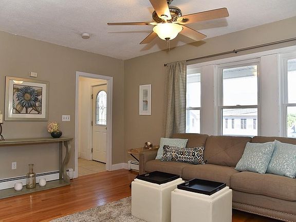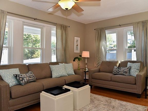 Have you been waiting for an AFFORDABLE MOVE IN ready home, close to PUBLIC Transportation and downtown Melrose? Your wait is over, this gem is waiting for your arrival! So many updates by the current owners from the oil to gas conversion, Super Stor water heater, stripped roof with 30 year architectural shingles and NEW Harvey replacement windows. Relax on the farmers porch after a long day with a cool drink in hand. The pleasure continues as you walk in to the oversized living rm with fireplace, hardwood flrs and ample windows allowing plenty of natural light. Your dining rm, open to the kitchen, is accented by warm cherry stained flrs. A fully applianced kitchen, with stainless steel refrigerator and gas stove. Perfectly located at the bottom of the staircase going to the 2nd floor, is a beautiful ceramic tile bath. The 2nd floor offers three bedrooms, ensuite Master bath with cathedral ceiling allowing for tons of light. Finished basement with bathrm. Short walk to the Hoover!!