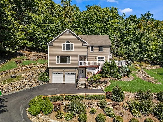 Young Colonial, with scenic mountain views from every angle. Beautifully landscaped with a backyard that has it all: Hot Tub, Fire Pit and Trails to Harriman State Park. The main floor welcomes you to an spacious living room, complete with a gas fireplace, a gourmet kitchen with a large center island, granite countertops, and stainless steel appliances, which is open to the dining area and a den with access to a wrap-around deck to enjoy the stunning views. There's also a home office guest room and half bath on this level. Upstairs you'll find the Primary Bedroom with walk-in closet, and an en-suite bath that includes double sink vanity, shower, and a large Jacuzzi tub under a skylight! Three additional bedrooms, full bath, and a laundry room. The walkout basement includes an exercise room, Sauna and storage with access to a large 2-car garage. Come and discover Suffern- with a highly rated school district. a charming downtown and quick access to NYS thruway, train, and bus to NYC.