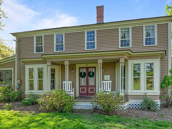 A remarkable gem offering seamless fusion of historic allure and contemporary comfort. Welcome to the Moses Peaslee Homestead, c.1825, situated on over 13 acres. The expansive grounds invite exploration and relaxation alike, that include over 1000’ of river frontage. This exceptional home has original hardwood floors, exposed beams; the intricate woodwork pays homage to the home's heritage, while thoughtfully integrated updates ensure a lifestyle of convenience and sophistication. The gourmet kitchen boasts slate and marble counters, modern appliances, a double oven plus a wood burning oven, and walk-in pantry while still maintaining antique charm. The family room is grand and inviting with a 2-story ceiling, exposed beams, and a field stone fireplace. There are so many treasures throughout from the sunroom nook w/ stained glass window, library w/ fireplace, 1st floor primary suite, clawfoot tub, right down to the chimneys and cupola. A light and airy feeling throughout, this home exudes elegance and style. Peace of mind comes with a whole house standby generator, and solar system that offsets 90% of your electric bill potentially saving you thousands! Over 60% of the home was added as new construction in 2000. Outbuildings offer endless potential and there is a huge home gym that was added above the garage. Grounds include orchards, pastures, and perennial gardens. A truly enchanting retreat for those who appreciate the finer things in life.