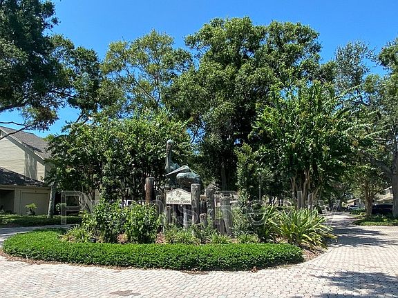 Stunningly beautiful second floor (stairs) condo in Pelican Place (north) community. As you walk through the front door, you are greeted with vaulted ceilings and huge basket chandlers over the entryway and dining room. The dining room plenty of storage behind the double French doors closets. This leads you right into the updated kitchen which features stainless steel appliances, and stone counter tops. The home overlooks the Pelican private country club golf course. You will be able to enjoy golfers while drinking coffee on the screened in porch off the kitchen and living room. There is vinyl floorings throughout, and the living room has wood built-ins and a stone fireplace. As you make your way down the hallway you will see an over sized laundry closet (hookups only), and immediately to the right is the Primary bedroom. This suit has a spacious and updated bathroom with walk in shower with gold fixtures, huge walk-in closet, and a water closet with more storage for linens. The dual sinks have stone countertops and dark navy blue cabinets that pair well with the gold accents. The guest bathroom features a free-standing shower with gold accents and etched glass. A small port hole window with stained glass lets in plenty of natural light. This will not stay vacant for long; you don't want to miss this one! Tenant is responsible for electric utility. Rent includes cable TV, water/sewer/trash, grounds care and pool maintenance. Tenant responsible for electric utility. Renter's insurance required. Special Offer! Only pay first month's rent, and a security deposit before moving in! NO LAST MONTH'S RENT. One animal considered with an approved application. Pelican Place is a gorgeous and scenic community with benches to rest, and a sparkling pool. Close to beaches, restaurants, Bellair Rd. & Clearwater/Largo Rd., entertainment, and MORE!