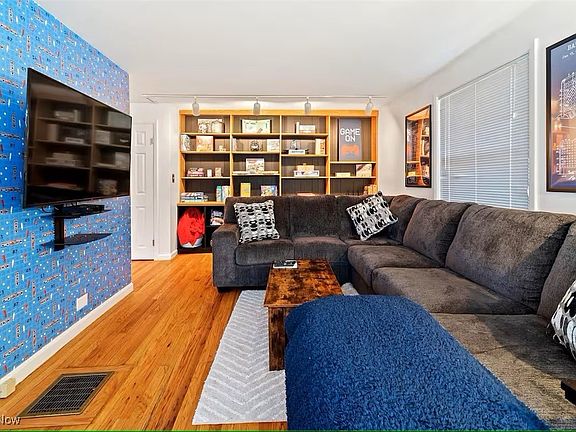 One of a kind in the heart of Berea! Welcome to this unique property just steps from downtown Berea and Baldwin Wallace University, and only 10 minutes from Cleveland Hopkins Airport. This home features a black metal roof (2020) newer appliances (2020), new AC unit (2025). A cozy first floor master bedroom includes its own fireplace and private deck overlooking Wallace Lake Park. Also on the main level you'll find a spacious kitchen, a large dining room, and a convenient half bath. Upstairs, two additional bedrooms and a full bathroom offer plenty of space. The walkout basement offers ample storage, a laundry area and access to a covered private patio. Don't miss your chance to tour this truly special home -- it might just be the most fun you've ever had at a showing!