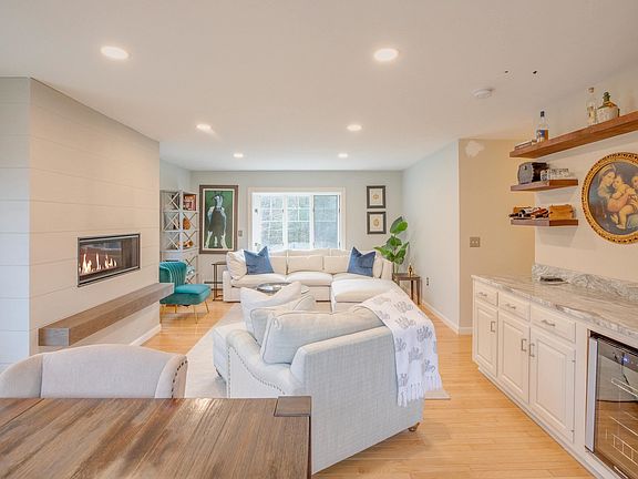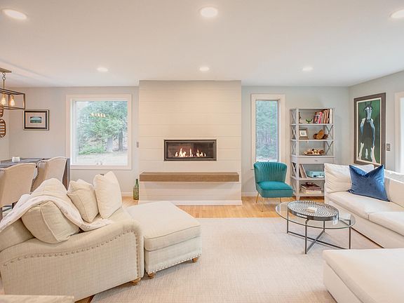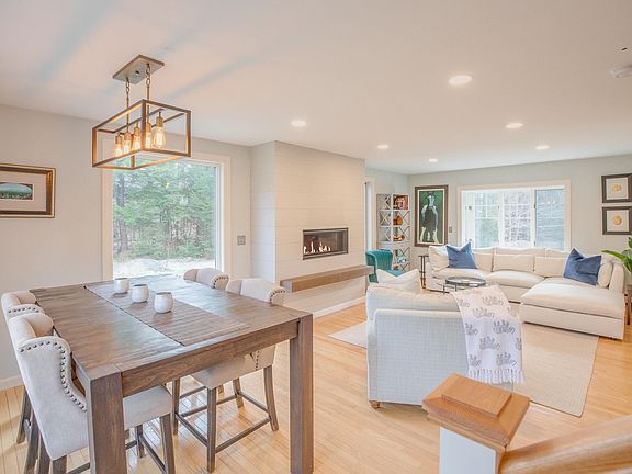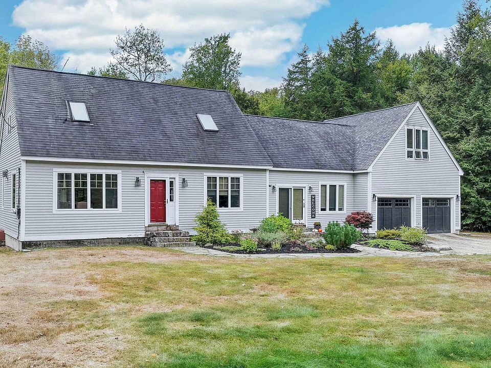 Beautifully updated contemporary farmhouse-style Cape situated on a level 1.20-acre lot with a backyard that extends to the peaceful spring fed pond. Rock walls line the driveway, complete with plantings, garden space and a Japanese maple that highlights the entryway. Inside, extensive renovations were completed in 2018-2021, including the stunning eat-in kitchen with quartz countertops and new appliances, featuring a commercial grade dual fuel range. All ceiling and wall light fixtures were replaced, giving the home a bright, refreshed feel throughout. Natural light floods through the living room, equipped with a new gas fireplace & wet bar—perfect for entertaining. The bright great room features new flooring, with glass sliders that open to the backyard. New carpet was installed upstairs and is where you'll find two spacious bedrooms, a full bathroom and cozy mezzanine space for overflow guests or reading nook. The attached two-car garage provides direct entry & includes finished living space above that connects to the main house—complete with a large bedroom, living area, galley kitchen & full bath with jacuzzi tub—occupy as the primary ensuite or an in-law suite. Whether you’re seeking a year-round residence or mountain getaway, this home delivers versatility & convenience, located just 10 minutes to I-93; yet nestled at the edge of the White Mountains with close proximity to all it has to offer including boating, skiing, mountain biking, golf & snowmobiling.
