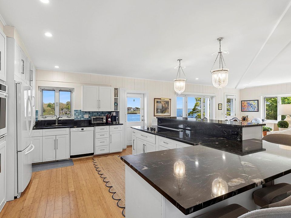 Tucked away in the serene waterfront community of Hampton Bays, this hidden gem offers the perfect blend of comfort and coastal charm. This beautifully maintained 1-bedroom, 1-bathroom end unit co-op features an open-concept layout that seamlessly connects the living, dining, and kitchen areas—ideal for relaxed living or entertaining. The kitchen is outfitted with sleek granite countertops and modern appliances, including an in-unit washer and dryer for added convenience. Central air conditioning ensures year-round comfort, while tasteful finishes throughout the home enhance its warm and inviting feel.