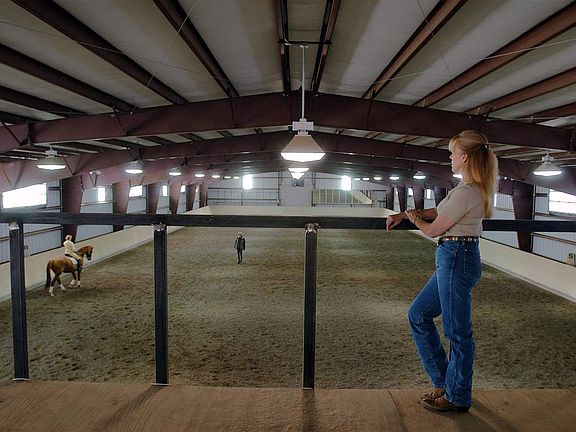 Located just minutes from the culturally significant city of Santa Fe, Luna Rosa is a state-of-the art commercially licensed equestrian training and boarding facility on 50 picturesque fenced acres. Highlights include paved access to the custom gated entrance; 40 horse stalls with paddocks, rubber mats and heated waterers in two barns; main barn with oversized indoor arena with rubber and sand footing, lounge, office, heated tack & laundry rooms, tack-up bays and wash stalls; three staff homes. Additional features include a hay barn, shop/ garage, outdoor arenas, turnouts, galloping track, European hot walker, trail access and more. A private well provides for domestic and stock water needs while landscaping irrigation and arena maintenance is provided by a sophisticated rain water catchment system. The Indoor arena is ideal for training and clinics with a pro sound system and elevated viewing platform. Whether horses are your business or your pleasure, or both, Luna Rosa offers amenities for nearly every equestrian discipline.