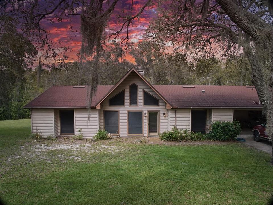 OVER 8 ACRES!!! Come see your own private piece of old Florida. This home sits on 8.2 acres in a private community with only 6 homes and NO HOA. There is a 1,650 ft airstrip so you can fly right to front door. There is plenty of wildlife from turkey, deer and much more that will visit your yard. The home features a brick hood in the kitchen, 2 master suites, cathedral ceilings in the living room, brick fireplace, large dining room with views of the woods, large sunk in shower, walk in closets, and indoor laundry. There is a two car carport with two spaces. Detached 39 x 42 metal building workshop / garage with a half bath. Call to schedule an appointment to see your own personal getaway! Roof was replaced in 2019.