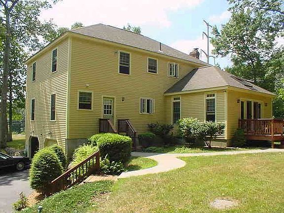 Beautifully maintained by original owners, this home shines and sits atop a gentle knoll surrounded by stonewalls. Bright and airy, this open floor plan is perfect for the active family. All rooms are well proportioned with indirect lighting, Holiday sized formal dining room with 2 sets French Doors & wainscoting, most spacious eat-in fireplaced kitchen with granite & center island, leading to a large cathedral ceiling family room with skylight & atrium doors to deck. All bedrooms are well sized with Main Bedroom having large walk-in closet and main bath w/whirlpool tub. A stunning stone walkway provides the formal entrance. A backdrop of trees and extensive classic New England stone walls border the well-landscaped yard with fantastic privacy and wildlife viewing. Convenient location to a mall and major highways. This home is a must-see and a pleasure to show. All bathrooms updated 2019, true showcases! Kitchen re-floored 2021. New commercial grade electric water heater (2020) and furnace (2018).