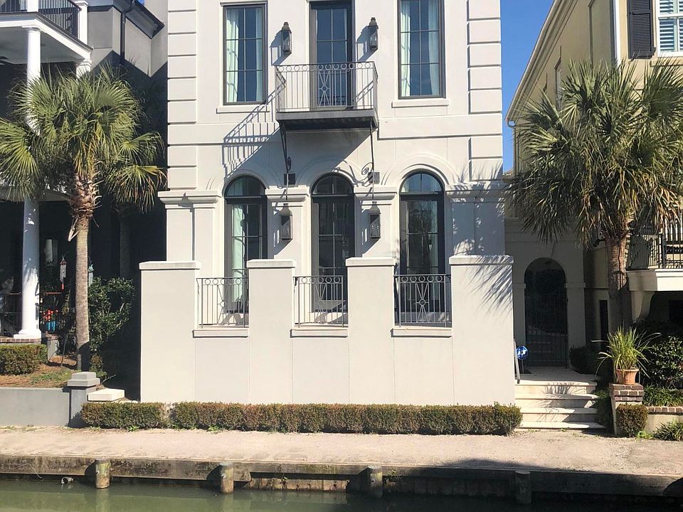 Stunning best describes this home. As you enter through iron gate to courtyard with travertine walkway and a very special place for entertaining with area for table, chairs and very private. Upon entering home limestone in foyer, 12' ceilings throughout, the chefs kitchen with Carrera Marble countertops, Viking 8 burner gas range, Sub Zero refrigerator, freezer built-in, Double ovens, wine cooler in Butlers Pantry with glass front cabinetry and island. Lots of storage and deep pantry. The keeping room off kitchen overlooks courtyard and great place to have conversations while cooking. The entertaining spaces are wonderful with wonderful dining and Great Room with doors to piazza overlooking canal and views of peaks of lakes. Roof top patio with spectacular views of bridge, lakes and more 3rd floor has refrigerator, i/2 bath and plenty of entertaining spaces. On the second floor are three spacious bedrooms, each with own bath. A tv area or wonderful study on this floor. Large storage room, laundry are on this floor. Master has doors to piazza, walk in closet, wonderful master bath. Home has dehumidifier system, encapsulated, Everpure water filtration system, tankless hot water system with recirculation. Stucco has been inspected 2 yrs ago, exterior landscape lighting, 2 car attached garage with sealed floors. Hardwood floors throughout home, custom draperies with blackout draperies. Plaster walls with rounded corners are rare, built make even more custom feel. Structures builders built in 2011 Movie screen will be taken down and patched Light in keeping room not conveying