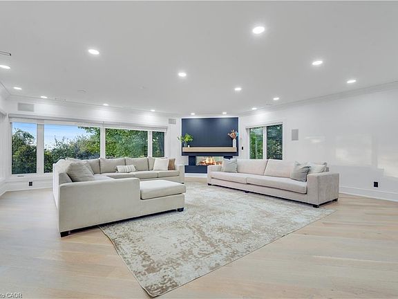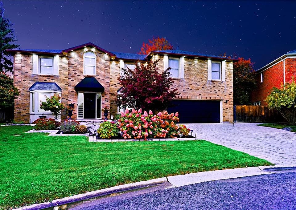 Welcome to 47 Ridge Point Drive - where luxury meets the skyline. Set high above the city on one of Burleigh Hill's most coveted lots, this custom-built masterpiece captures breathtaking, panoramic views of Lake Ontario and the Toronto skyline that shimmer like stars across the night horizon. This isn't just a home - it's an experience. Every inch of this nearly 6,000 sqft. residence radiates warmth, indulgence, and precision craftsmanship. Step inside to a grand open-concept living space anchored by soaring ceilings, panoramic windows, and a custom designer kitchen with quartz counters, premium built-ins, and a full walk-in pantry. The primary suite feels like a five-star spa - a private sanctuary with heated floors, double rainfall showers with body jets, a Jacuzzi-style ensuite, sauna, and a massive walk-in dressing room. Every additional bedroom offers its own touch of elegance, designed to give family and guests the comfort of boutique hotel living. The lower level transforms into your own resort: a wet bar, billiards lounge, private gym, and sunroom that walks out to an entertainer's paradise. The backyard delivers pure tranquility - inground spa, outdoor living and dining areas, automatic awnings, and a lush landscaped escape with skyline views that turn every sunset into art. From its custom millwork and designer lighting to engineered hardwood and tile flooring throughout, this home blends sophistication with soul. Perfectly positioned just minutes from Brock University, Highway 406, and Niagara's scenic trails, 47 Ridge Point Drive stands as a rare offering - a home where luxury, serenity, and emotion collide.
