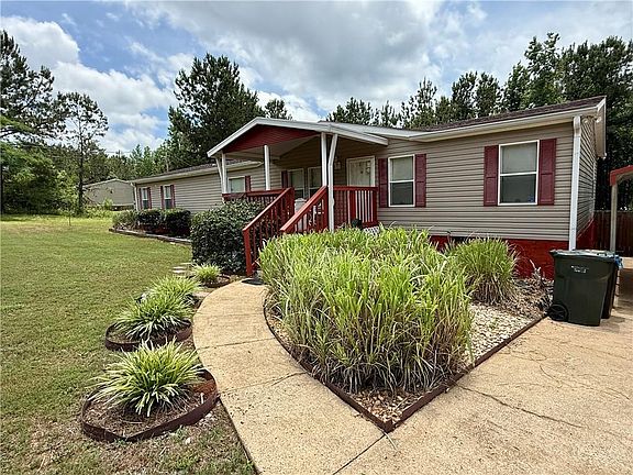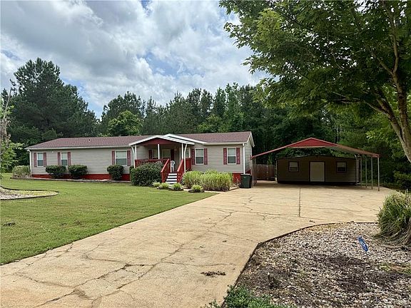 Very well maintained manufactured home on a 1 acre lot in Ft. Mitchell. This home is technically a 3 bedroom, 3 bath but has a bonus room with a closet that could easily be converted to a 4th bedroom. Two of the bedrooms have their own ensuite bathrooms and the third (and bonus room) has easy access to the 3rd bathroom. This home was custom ordered with some reinforced structural components, solid wood cabinets, and a remote controlled gas fireplace. The HVAC was replaced in 2023 and the roof is only 5-10 years old. The home has covered front and back porches and a privacy fenced back yard (property goes back well beyond the fenced area.) There is a triple carport and a 12x24 workshop that is insulated, divided for storage, and has a window unit AC. There is a new ADT security system (no contract) that will pass with the sale. This home is on a permanent foundation and underpinned with block and masonry. This a great rural location with easy access to Ft. Benning and HWY 431 South.