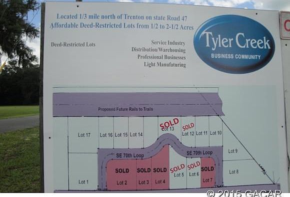Vacant property (.65 acres) available for commercial use in the Tyler Creek Business Community on State Road 47 in Trenton. The road frontage provides great visibility for a business. Imagine the business possibilities at this lot price!