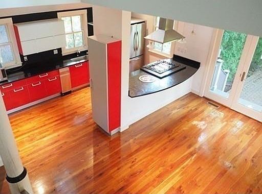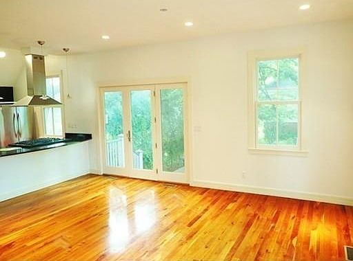 Luxury rental in prestigious Newton neighborthood. Architect-designed transformation of backyard barn into a sophisticated, contemporary, Euro-style home. Free-flowing 2000-square feet of open space that includes living/dining room, kitchen with Italian cabinetry and granite counters, 2.5 tiled bathrooms with Italian fixtures, and glossy cherry floors throughout. Skylights and huge picture windows capture the natural sunlight and enhance the views of the lush landscape. Spacious upstairs family room is surrounded by two en suite bedrooms, with a loft area for office, library or 3rd bedroom. Walk out to a private terrace and professionally landscaped gardens with gazebo. Garage and additional parking. Gas heat, hot water and cooking, Energy Star appliances, state-of-the-art heating and cooling systems, full laundry and storage.