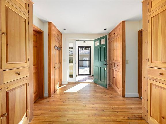 Blending timeless character with modern convenience, this updated historic home lies on two acres within Harmony Village. Surrounded by mature perennials and natural beauty, it’s a private haven just minutes from local shops and amenities. Inside, an abundance of natural light fills the open, inviting layout. Hardwood floors, a spacious living room with a wood stove, and a large dining area create a warm and welcoming atmosphere—perfect for everyday living and entertaining. Designed for the culinary enthusiast, the kitchen boasts double ovens, stainless steel appliances and a wine fridge. A versatile first-floor den or home office, along with a full bath and laundry, offers flexible living options. Upstairs, the oversized primary suite includes a walk-in closet and ensuite bath. Two additional bedrooms and another full bath complete the second level. The three-season sunroom provides a serene retreat overlooking the private yard and a charming pergola for summer gatherings. Multi-level landscaping adds year-round visual interest, especially as spring brings vibrant color to the grounds. Additional highlights include a detached garage, a large shed/workshop, and numerous thoughtful upgrades—newer roof, composite decking, custom blinds, and built-in features. Whether you're seeking serenity, space, or style, this one-of-a-kind home offers it all.