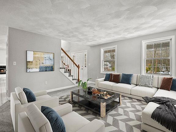 Welcome to your dream home in sought-after Tyngsborough! This spacious property boasts 3 bedrooms, 2.5 bathrooms, a 2-car garage and MORE all nestled on a near 2.5-acre lot. Come inside to find a freshly painted and newly carpeted interior, featuring a living room, formal dining room, and beautiful eat-in kitchen offering a center island and ample storage. The grand family room with fireplace and cathedral ceilings is perfect for entertaining. Enjoy mornings on the 3-season porch, and find convenience with first-floor laundry. Upstairs, discover three inviting bedrooms, including a luxurious primary suite with walk-in closet and ensuite bathroom, as well as an additional full bathroom. Outside, the expansive lot offers endless possibilities for outdoor enjoyment, with the attached garage providing ample parking and storage space. Don't miss out on making this exceptional property your own!