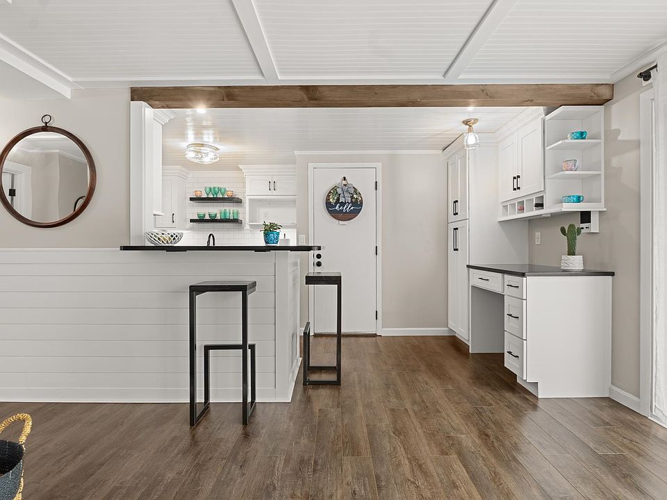 This beautifully renovated top-floor condominium is located less than two miles from three stunning Seacoast beaches—Hampton Beach, North Beach, and Plaice Cove—and includes a resident parking sticker for convenient beach access. The one level condo features a modern kitchen with a tile backsplash, stainless steel appliances, quartz countertops and custom cabinetry. The open-concept kitchen and dining area flow seamlessly into a bright and inviting living room, which opens to a private balcony with an additional storage closet. The home showcases thoughtful design details, including bead board and shiplap ceilings in the kitchen, living room, and hallway, as well as a built-in desk, entryway bench, and coat hooks that enhance both functionality and style. Additional highlights include a new heating and central air conditioning system, and two designated parking spaces. Spend more time enjoying life and less time on upkeep with the professionally maintained amenities such as an in-ground pool, landscaping, and snow removal. The perfect blend of modern comfort, coastal charm, and unbeatable location…. ideally situated just up the street from Routes 101 and 95, and minutes to Portsmouth’s restaurants, shops, and waterfront. Clean, bright, and move-in ready!