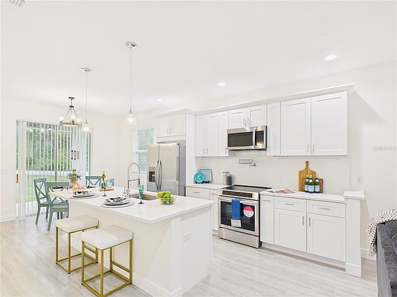 New Construction on Oversized Lot in Beautifully Well Kept Area between Ocala and Lady Lake. Royal 8ft Entry Doors with 9ft Ceilings and just Gorgeous Tile throughout. All Quartz Countertops with matching Backsplash and Soft Close Cabinetry. Stainless Steel Appliances. Uniquely Stylish Light Fixtures and Ceiling Fans along with 2 inch Blinds Installed. Extra wide Baseboards. Primary Bedroom has a Spacious Walk-in Closet and the bath is equipped with Double Vanity and Large Tile Shower with Glass enclosure. Guest Bath/Shower is also Tile. USB/Outlets throughout. Floodlights on all 4 corners of the house. Nice Covered Patio just outside the Dining Area w/8ft Sliding Door. Roomy 2 Car Garage with 8ft 8in Ceiling and Charging Station Hook-up. Extra Wide Driveway and Wide Sidewalk leading to Covered Front Entrance. No HOA. Plenty of Trails, Lakes and Fishing Nearby. Come see what a Touch of Class really looks like!!!