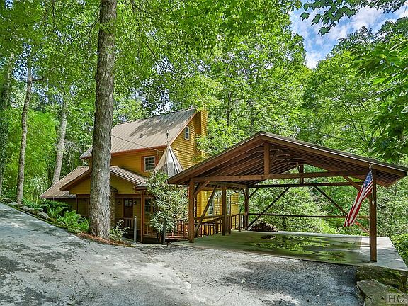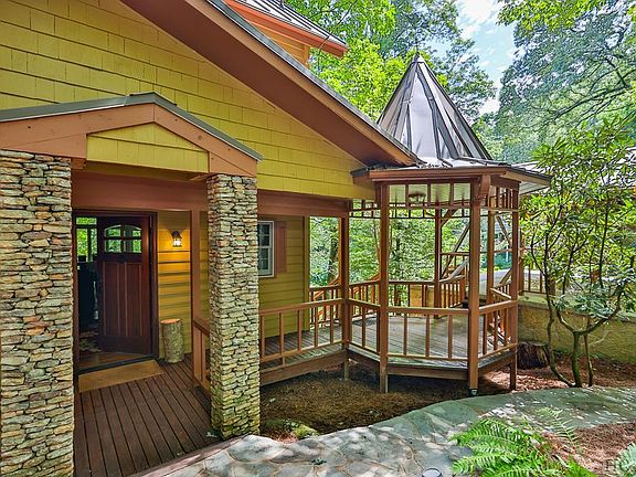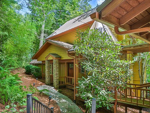 Charming cottage on Big Creek which joins the larger part of Lake Sequoyah at the bridge near The Verandah. Enjoy a relaxing afternoon of kayaking or canoeing on the lake from your private dock. Located in the convenient Webbmont area of Highlands, this 3BR, 3 1/2 bath house was originally built in 1910 so it exhibits old Highlands charm, yet it has been updated several times to allow for today's comforts. The main floor features a bedroom, private bath and half bath for guests. The living room offers a wood burning, stone fireplace and overlooks the water feature, bocci court and path down to the lake. The dining room opens from the living room and adjoins the kitchen with distressed cabinets. Perhaps the best part of the house is the screened porch with a woodburning fireplace for cool evenings which leads to an open deck and steps to the ground level and path to the lake. The second level has a bedroom suite with sitting room and private bath. The third level has another private bedroom and bath for guests. You are minutes from town but far from the hustle and bustle of activity. A wonderful retreat awaits you and your guests.