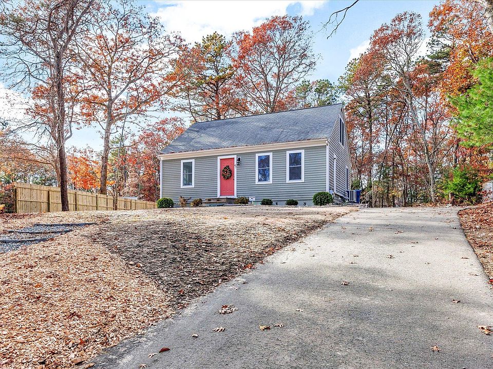 Completely renovated and an exceptional value, this four-bedroom, one-full-bath Cape-style home offers modern updates in a private, peaceful setting at the end of a cul-de-sac lane. The first floor features newly finished hardwood floors in the living room, kitchen, and hallway, along with a brand-new kitchen and a fully renovated bathroom. Two bedrooms are located on the first floor, with two additional bedrooms upstairs, providing a flexible and functional floor plan. Enjoy outdoor living with a deck off the kitchen, a backyard storage shed, and a newly installed fence along the property line. Additional updates include a paved driveway, all-new window screens, and recently installed cedar shingle siding. The roof also appears to be in very good condition. The basement, accessible from the interior, is clean and freshly painted, features washer/dryer hookups, and offers a bulkhead with a weather-resistant basement door for convenient exterior access. This move-in-ready home has been thoughtfully updated inside and out for comfort and convenience. Great central location with easy access to the off-Cape bridges, Mashpee Commons, and all that Falmouth has to offer.