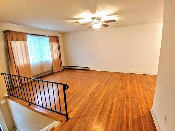Hardwood Floors. Walk In Closet. Minimum Work Needed. Hot Water Heat. Three bedroom with a possible 4th room on the lower level. Family room with wood-burning stove vent. First floor needs all new flooring and bathroom to be completed. One car garage with garage door opener. Upstairs hardwood floors throughout. Nice ceiling fan in living room. Nice light fixture in dining room. Central air. Circulating hot water baseboard heat. Eat-in kitchen with formica countertops electric stove built in microwave. Updated Main bath. Master bedroom with walk-in closet and double door closet. Pull down stairs to attic. Oil tank above ground. Backyard patio with fire-pit.