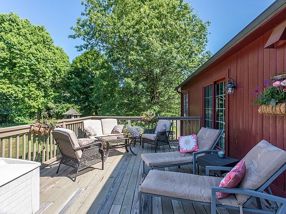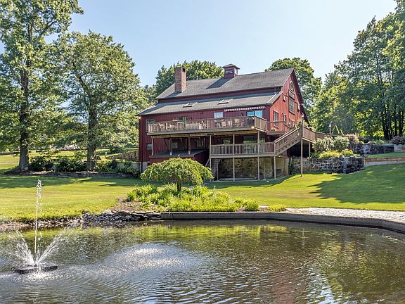This very unique Country Barn was built in 1930 and remodeled thereafter into a very special home. It is situated on 4.73 private bucolic acres in the historic district of Harwinton. The property has a spring fed pond with a fountain, stonewalls, stone gazebo, decking and a waterfall feature that greets you at the entrance. The home offers an open floor plan with original beams and barn wood flooring. The very large brick fireplace in the main living area and the fireplace in the den adds to the cozy charm on a cold winter night, and the copper wet bar is a nice addition. This home is made for entertaining with its relaxed atmosphere!A gourmet chef's kitchen offers a 6 burner gas stove, two gas ovens, a grill top and an overhead stainless steel hood venting system.The custom cabinetry and center island offers the perfect spot for sitting and relaxing while overlooking the cooks at work. The counters are black soap stone with a butcher block chopping area which make the kitchen complete. Need storage.....well you can find that with the 5 car attached garage and additional storage in the lower level with easy access. Must see to appreciate!!