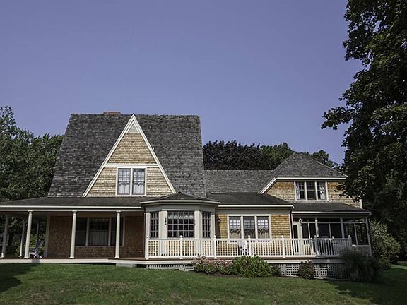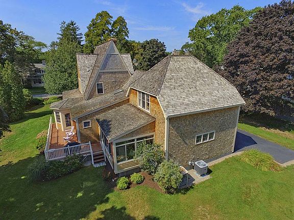 LOCATION!! LOCATION!! LOCATION!! On the corner of Standish Street & Hornbeam Road, a desirable in-town waterfront cul-de-sac, this iconic home offers an open floor plan with 3000+ square feet of living and first floor Master Suite. Fireplaced Living Room is open to Dining Room-just perfect for entertaining. The charming three season room overlooks the large level lot with seasonal peeks of the water. Sunny Kitchen offers maple cabinetry, granite countertops & light/bright breakfast nook. Second level features three bedrooms - one with space for potential in-law or au-pair suite. The unfinished lower level is just waiting for your finishing touches. Detached shed is perfect for a "Man Cave' or "She Shed". Campbell Smith custom designed home with wraparound porches and newer cedar roof combines contemporary and classic architectural elements. Steps to Hall's Corner shops & restaurants. Generator. Two car attached garage. Minutes to school campus and Duxbury Beach