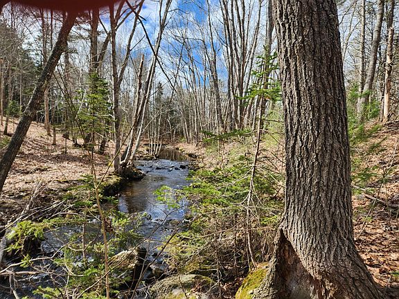 This is a large undeveloped parcel in the quaint little village of Round Pond. The road frontage consists of an open field leading to a slightly elevated wooded area that would accommodate a couple of private building sites overlooking Bulls Brook.