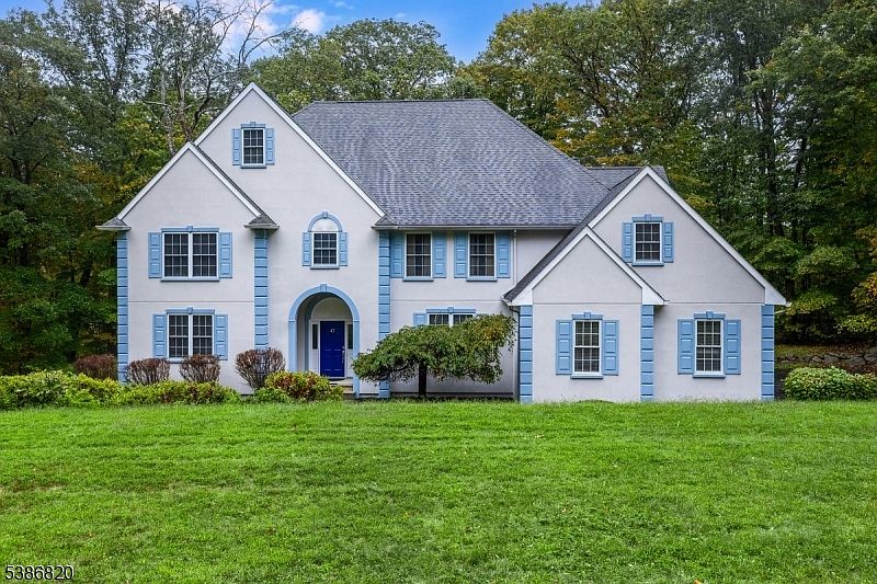 This stately Stonehedge Estates colonial features 4 bedrooms, 2.5 baths and an oversized 2-car garage. Nestled among mature trees on a 1.54-acre lot, this home is part of an inviting community offering privacy yet quick access to Rt. 23, making it one of the area's hidden treasures. Step inside to a welcoming two-story foyer that opens to a spacious living and dining room featuring hardwood floors with picture frame accents and extensive molding. The chef's kitchen will take your breath away with granite counters, center island, built-in refrigerator, and a professional-grade Viking range. The kitchen flows seamlessly through the breakfast area to the dramatic family room with two-story ceilings, abundant windows, and a wood-burning fireplace framed in black marble. The main level is completed by a private study with French doors. Upstairs, you will find a comfortable primary suite with a luxurious ensuite bath, sitting room, walk-in closet, and laundry facility. There are three additional generously sized bedrooms with large closets and hardwood floors. The expansive, finished walkout basement offers flexible living space and is already plumbed for a third full bath. The home has been freshly painted, inside and out. Set within one of the area's most desirable neighborhoods, this home offers the perfect balance of privacy, convenience, and elegance just 47 miles from Manhattan yet worlds away in its peaceful wooded setting.