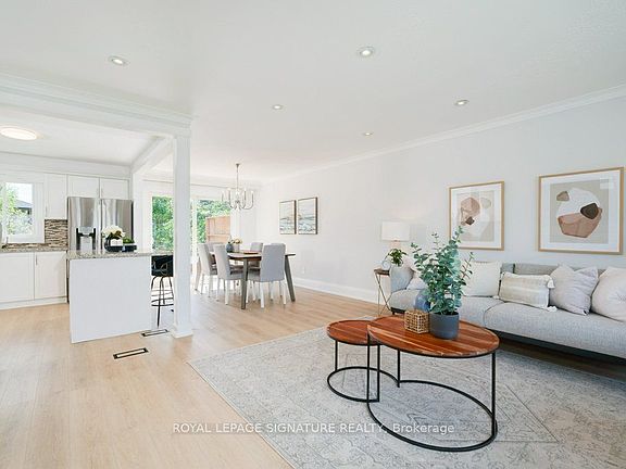 Beautiful Renovated Sidesplit with Open Concept Design on the Main Floor. Luxury Vinyl Floors, on main level recently installed. The Kitchen has Granite Counters, St/St Appliances and a Spacious Island. The Island is currently set up to house a Washer & Dryer. Alternatively add some Shelving or Drawers. On the Upper Level are 3 Bedrooms & a 4 pc Bath. Back down to Ground Level where you find a spacious Family Room Overlooking the Backyard and Walk out to the Patio. Currently this Level can be considered as part of the In-law Suite and can be alternatively used as a Bedroom. One more Level down and you are in the Large Recreation Room with open concept Kitchen and Dining Room. Access the Backyard from the Family Rm to the Patio or from the Upper Dining Rm to the Brand New Deck. For the Sun Lovers you will enjoy the bright Southern exposure. Too Hot for You? then enjoy your view under the large Canopy which covers the Patio. Last but not least the Garage and Parking for 4 cars. If you have time, Take a Walk down to the Conservation Area just a few minutes west from this home and enter a serene pathway which takes you over the Don River. To your surprise, Watch for Salmon running in the Fall. Parks, Shopping, Local Library, Tennis Courts, all close to home. Only 5 Minutes to the DVP.