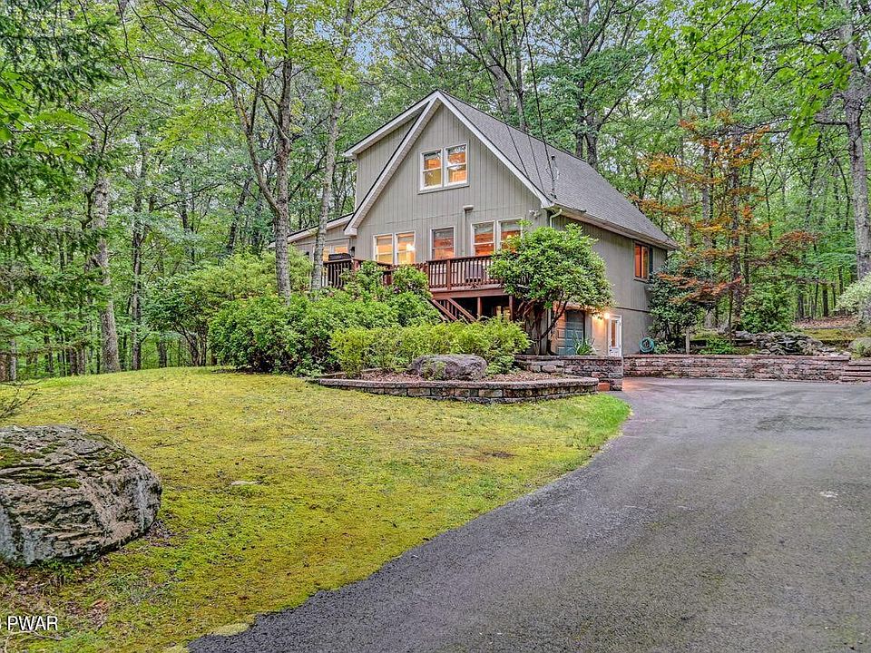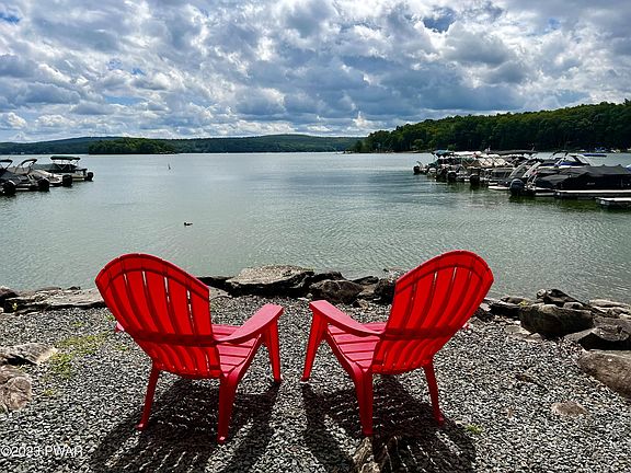 Lake Wallenpaupack Cove Point Club Chalet w/Boat Slip Included! Private & secluded this home set on 1.48 acres is newly remodeled & features 3 bedrooms, 2 BAs on three finished floors! The open floor plan invites you into a living room & family room on the main level plus a gorgeous kitchen. The main floor also features a bedroom, full bath, & a large deck. The second floor has a primary bedroom w/dual closets, full bath & the 3rd BR. Head to the partially finished lower level that walks right out to the yard. The exterior is beautifully landscaped w/a waterfall, fenced in backyard & paved driveway. 1-car attached garage & 1-car detached garage. Take a golf cart to your boat slip, tennis courts & playground. Town, restaurants & shopping are less than 10 minutes away. Showings begin 8/25., Beds Description: 2+BED 2nd, Beds Description: 1Bed1st, Baths: 1 Bath Level 1, Baths: 1 Bath Level 2, Eating Area: Ultra Modern KT, Eating Area: Dining Area, Eating Area: Modern KT
