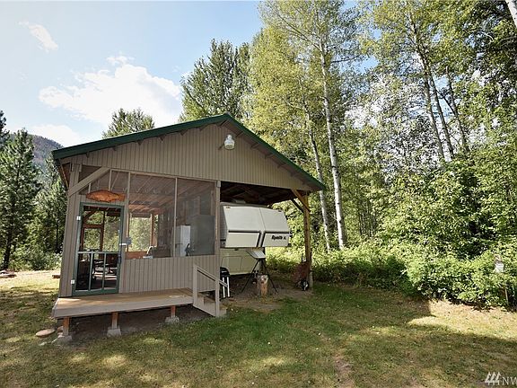 Charming riverfront property with over 100 ft of low bank Twisp River frontage. Come & enjoy your own private sandy beach, or your crystal clear river fed pond all bound by National Forest Service property on two sides. 24 x 30 pole barn with screen porch & 5th wheel trailer. Large storage shed/workshop. Well and power are in and septic needed. Buyer to verify the suitability of property for buyer's intended purposes.