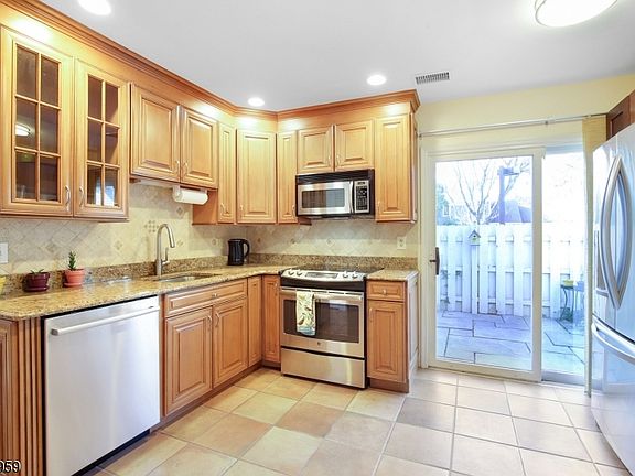 Bright, beautiful, and impeccably updated, this stunning Brentwood model at Lord Stirling offers an open floor plan, abundant natural light, and serene views of manicured lawns. Enjoy seamless indoor-outdoor living with a private courtyard and a second patio enclosed by a privacy fence, perfect for relaxing or entertaining. The gorgeous kitchen features modern finishes and opens directly to the patio through sliding doors. The spacious living room boasts vaulted ceilings, skylights, and warm wood flooring that extends across both levels of the home. A formal dining room and a cozy private den with a fireplace offer additional versatile living space. Retreat to the sunroom for year-round enjoyment, or unwind in the expansive primary suite featuring a luxurious updated bath. A second bedroom and fully renovated bath upstairs provide comfort and privacy. Updated powder room and a full size washer dryer are on the main level, dedicated storage room upstairs, updated central air, and an attached garage add to the home's convenience and value. Ideally located near town center, top-rated Bernards Township schools, including Cedar Hill Elementary school, shopping, dining, highways, NYC Midtown Direct trains and the Environmental Center. The vibrant community includes 150 homes spread over 53 beautifully landscaped acres with amenities such as an outdoor pool and tennis courts. NO PETS.