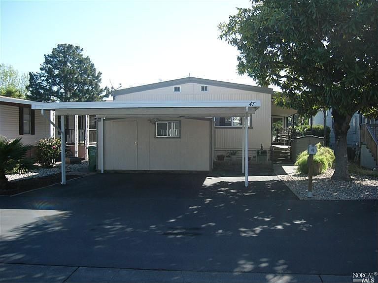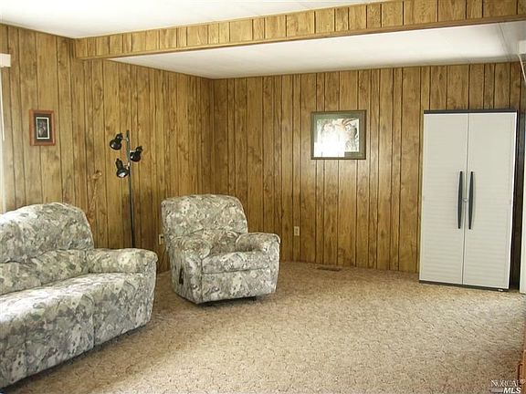 This is a special one! Everything shines in this spacious double wide. Freshly painted exterior, D/P windows, new light fixtures, ceiling fans, remodeled bathrooms, central AC & more. Kitchen has dual oven & gas stove & garden window. Addl. 8x10 bonus room. Recovered patio deck has new plywood, & carpet. New pavered walkway. Custom built shop w/ elect. Tons of storage. Great yard w/ raised beds. Fenced prop.,great for dogs. Very low space rent!