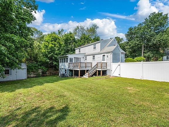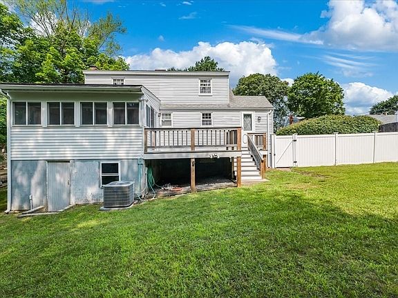 ***OFFER DEADLINE IS 5PM ON MONDAY, JULY 28*** Last house on a cul-de-sac is the one you've been waiting for - 3 bedrooms, 2 baths, central air, a beautiful rear sun room, and a large deck overlooking the fenced yard with shed. The main level features gleaming hardwood floors in most rooms, a large eat-in-kitchen, a separate dining room, a living room, a full bath, and one bedroom that connects directly to the sun room and rear deck. Upstairs, there are two more bedrooms with skylights, plus another full bath with shower. And the basement features a new French drain system (2024) for peace of mind, updated 200 amp electrical service, and new natural gas service instead of oil for the heating system. Terrific neighborhood location just 1 mile from the Holbrook / Randolph Commuter Rail station.