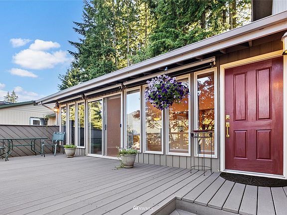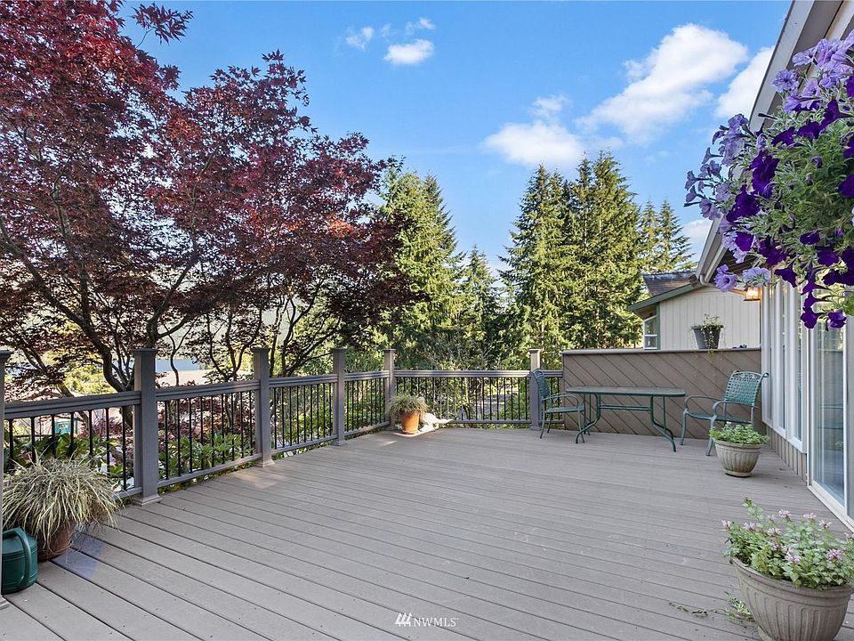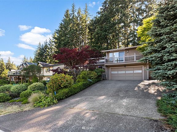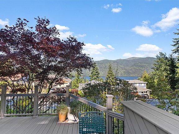 Lovely lake view home located in sunny Gate 1 backing the golf course. Enjoy both Lk Whatcom & Stewart Mtn views throughout the house. You will love the new oversized entertaining deck overlooking the lake and surrounded by mature landscaping for the perfect amount of privacy. Soak up the sunshine w/floor to ceiling windows w/custom sunsetter shades to keep the home perfect temperature year round. Main level living also features beautiful hardwood floors and vaulted ceilings. Newly remodeled kitchen has custom cabinets, granite counters & SS appliances including double oven. With Natural gas, private deck & lake views from primary suite, large bonus room, great patio space in back & newer roof, this is a must see! Plus, walk to the marina.