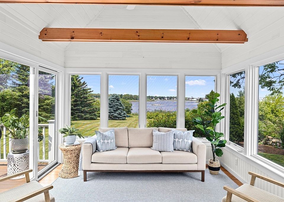 Privacy, land, and WATER VIEWS! Welcome to your secluded coastal retreat on a quiet dead-end road, offering stunning sunsets & exclusive access to Musquashicut Pond. This beautifully renovated home features a flexible floor plan w/first-floor bedroom, home office, & two additional bedrooms upstairs w/brand new fixtures & floors—including a primary suite w/spectacular water views & new custom closet. Enjoy the open-concept first floor, freshly painted throughout, w/ a light-filled sunroom surrounded by windows overlooking the water. The spacious family room boasts a cozy gas fireplace and newly finished built-in. Step outside to an enormous deck perfect for entertaining, surrounded by a manicured lawn & your own private waterfront. Two kayaks are included—launch right from your backyard! Additional highlights include garage, on-demand generator, town sewer, gas, & expansive basement ideal for finishing. Located just minutes from the commuter rail, Minot Beach, & Hatherly Country Club.