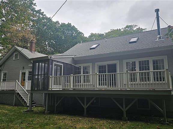 Welcome to 47 Woodland Av Smithfield. This unique well-maintained property is an interesting mix of old and new. The original Cape Cod style home is circa 1930 in the 1990's a large attached two car garage measuring 24 x 34 was added .There is a large family room, bedroom and bathroom over the garage. The layout is reminiscent of duplex and offers great in law possibilities. The rear deck spans the length of the house, and there is an enclosed elevator lift which brings you from the garage to the upper deck so you don't have to climb stairs to enter the main living level. Central air-conditioning vinyl siding and a beautifully landscape lot add to the allure. This home is located on a dead end road and sits in both Smithfield & North Providence. Contact the listing agent for your private viewing. ESTATE SALE.