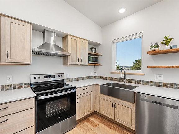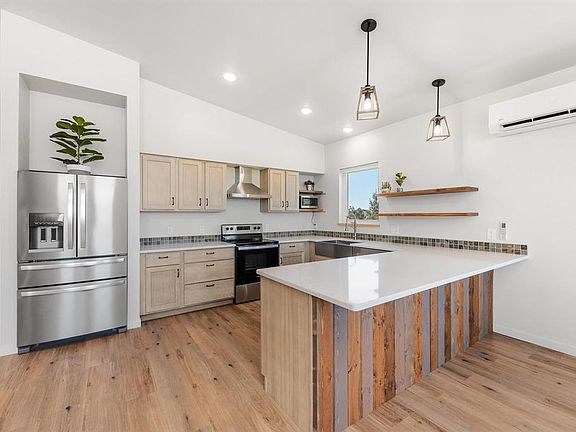 This immaculate, newly constructed residence is ready to become your haven. This single-level home offers three bedrooms and two bathrooms, complemented by an expansive kitchen, dining, and living area designed for seamless entertaining and everyday comfort. The kitchen stands as the heart of the home, featuring a farmhouse sink, a generously sized island accommodating up to five guests, slab quartz countertops and custom cabinetry. The kitchen also includes brand new stainless steel appliances, including a dishwasher, refrigerator, range/oven, and microwave, all under warranty. Located apart from the other two bedrooms, a large primary suite has plentiful windows artfully placed to allow lots of natural light while maintaining privacy. The primary bathroom offers a large double vanity with quartz countertops as well as a custom tiled shower and large, walk in closet. The spacious and sunny great room has vaulted ceilings and big picture windows. The dining space can easily fit a large table or additional furniture, which comfortably accommodates several guests without feeling oversized. Each bedroom offers personalized climate control, top-down blinds, and efficient Rubbermaid closet systems for effortless organization and comfort. This eco-conscious homes is HERS rated, ensuring energy efficiency without compromising on luxury. The builder will finish the landscaping plan, complete with a drip irrigation system. The yard has a picturesque backdrop of mountains and pastoral views from the covered back patio. This home is located in a desirable part of the neighborhood because the land behind that backyard is private and there are no current plans for development. Upon entering the home, you are greeted by a welcoming entryway with a custom bench, hooks and roomy closet, ideal for storing outerwear and accessories. The brand-new washer and dryer are located in a convenient central location. Located between the two bedrooms, a shared full bathroom features ample storage, a custom tile shower, and spacious vanity. There are multiple spots for off street parking on this property which makes it the complete package!