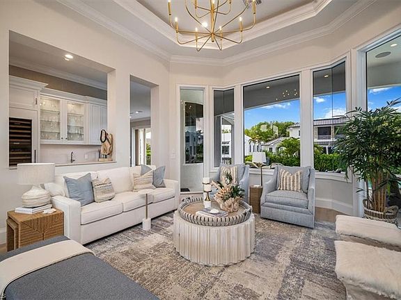 Tucked along a direct Gulf-access canal in prestigious Aqualane Shores, this spectacular estate captures the essence of Naples waterfront living. Offering southern exposure, a new seawall and dock (2023), and a full interior transformation - this home combines timeless coastal design with modern innovation and effortless livability. Designed for those who value refined coastal living, the residence showcases seamless indoor-outdoor flow with a resort-style pool and spa, expansive tiered decking, and an upgraded outdoor kitchen overlooking tranquil water views. Inside, wide-plank oak flooring, soaring ceilings, and elegant millwork create a timeless yet modern aesthetic. The light-filled main level features a grand great room, gourmet chef’s kitchen, and a serene primary suite with direct lanai access, while an additional guest suite provides comfort and privacy. Further highlights include a whole-home generator, upgraded HVAC systems with dehumidifier and garage A/C, new pool equipment, 25,000 lb. boat lift, and all-new televisions throughout. Enhanced landscaping, a comprehensive alarm and camera system, and meticulous attention to detail, inside and out, ensure the home lives as effortlessly as it looks. Just a short walk from Naples’ world-class beaches and the fine dining and boutiques of Third Street South, this Aqualane Shores home exemplifies luxury waterfront living at its finest.