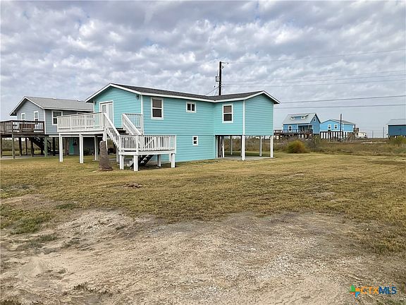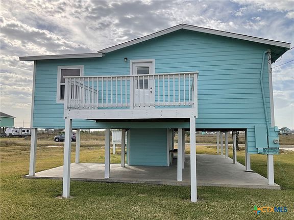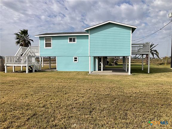 Stilted house on a double lot with water views from the front and back decks. Watch the sunrise from the front deck and the sunset on the back deck. Open floor plan with tile throughout. Very low HOA dues yearly. HOA includes boat ramp, small park area with kayak launch and large T head lighted fishing pier. This charming is house is located in Holiday Beach community. Boasting spacious primary bedroom with outside access to private deck this 880 sqft home is perfect for those seeking a tranquil retreat. Inside, the house is a welcoming atmosphere with nice open layout. The nice kitchen, equipped with white cabinets and tile countertops, is perfect for both everyday living and entertaining. Laminate and Tile flooring throughout adds a touch of elegance and ease of maintenance. Guests will appreciate the extra parking spaces in the next-door empty lot, making entertaining a breeze. This property is ready for you to move in. Located in the Aransas County ISD, this home is ideal for families or anyone looking for a nice weekend getaway and coastal lifestyle. Conveniently situated close to restaurants, shopping, boat storage, and a boat ramp, this home offers everything you need for comfortable coastal living.
