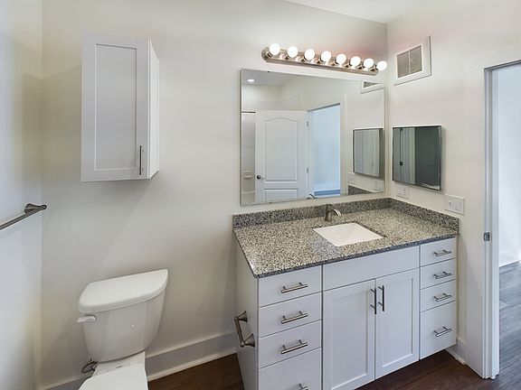 The Shot Clock Two Bedroom Two Bath Apartment Home #29-102 at Hickory Cottages offers an exquisite layout on the lower level. The chef's dream kitchen boasts granite countertops and state-of-the-art appliances. Natural light fills the living space, ideal for relaxation or entertaining. The primary bedroom includes a luxurious bathroom and oversized closet. The second bedroom features an adjoining bathroom with an oversized soaking tub. Residents enjoy top-notch amenities, including a saltwater pool, fitness center, and relaxing fireplaces. Your dream home awaits!